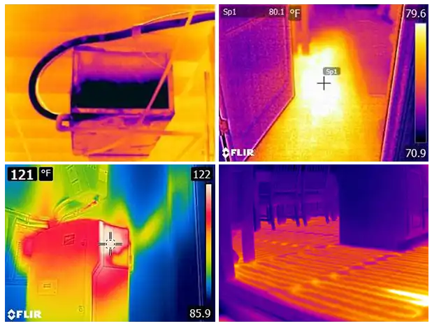 Con las imágenes térmicas, también se pueden encontrar conexiones sueltas o problemas asociados a suciedad que crearán una resistencia adicional, esta, con el tiempo ocasionará sobrecalentamiento, lo que puede desencadenar un corte de energía o un incendio. Otro ejemplo del uso de cámaras térmicas para detectar problemas eléctricos son los motores, donde se puede anticipar una falla por sobrecalentamiento o fugas de aceite.